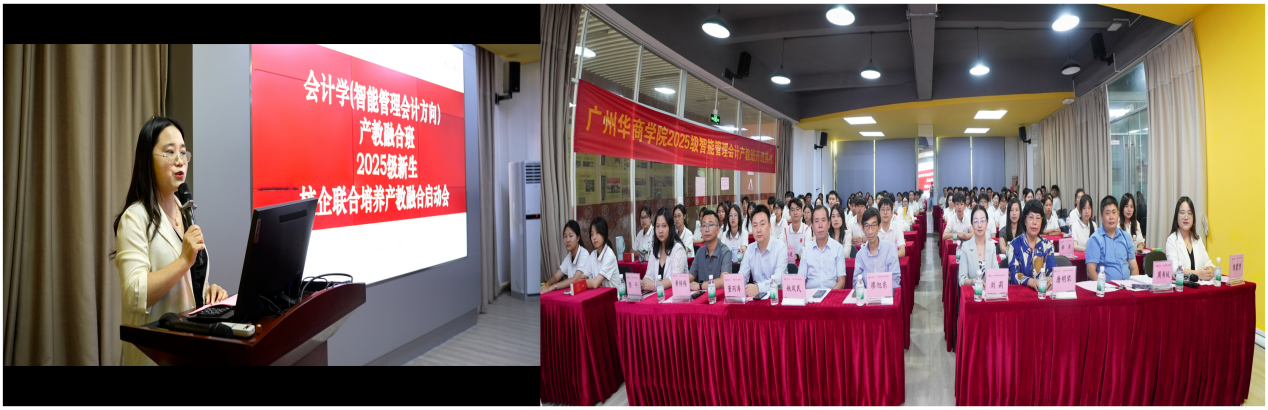 2025年10月14日,会计学2025级智能管理会计产教班新生开班典礼在letou官网首页手机版报告厅举行。新道科技股份有限公司助理总裁刘莉女士、广东分公司总经理董丙涛先生等企业代表,华商科教集团CFO兼产业学院企业方院长廖旭东先生、学校产教办唐明琴主任以及letou官网首页手机版领导、2025级产教班新生及2024级产教班学生代表参加典礼。letou官网首页手机版院长助理兼产业学院执行院长陈蒙梦主持典礼。