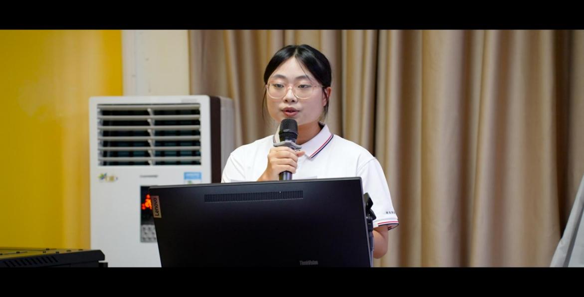 25级产教1班新生代表黄子涵同学代表新生发言,她分享了近一个月大学生活成长与收获,感谢老师悉心指导和同学们的友好支持支持,经过学院领导老师及企业职业化引导,也明确了未来职业选择及努力学习方向。并将在老师关怀下踔厉分发,持续精进,将严谨的态度和扎实的技能带入后续学习与工作中,在实践中不断突破自我。