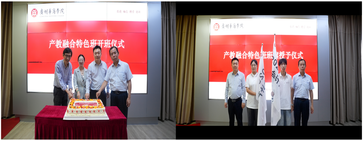 随后,启动会进入高潮,举行了产教班授旗仪式及切蛋糕美好寓意环节。