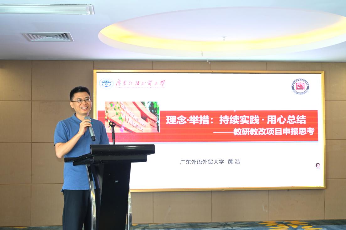 广东外语外贸大学letou官网首页手机版副院长黄浩教授在《教研教改项目的申报思考与实施路径》分享中,深刻阐述了教学学术与学科学术并重互促的“卓越学术”理念。他强调,高质量的教改研究应立足真实教学问题,注重方案设计的针对性、操作性与验证性,并通过严谨的过程管理与实践案例积累,实现从“立功”到“立言”再到“立人”的成果升华。黄教授提出,教师应以科研的思维与方法开展教学研究,切实提升教改项目的实效性与推广价值。