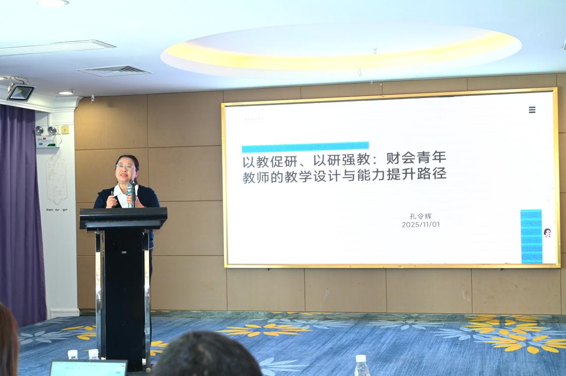 广东财经大学孔令辉教授作了《以教促研、以研强教:财会青年教师能力提升路径》的主题报告。她提出,新时代财会教师应实现从“知识传授”到“全面育人”的教学使命转变,通过系统化的课前设计、以学生为中心的课堂激活策略,以及研究导向的课后延展,构建“教学—研究—成长”的良性循环。孔教授强调,应通过建立教学共同体、实施多元反馈机制,推动教学质量的持续改进与教师专业能力的协同发展。