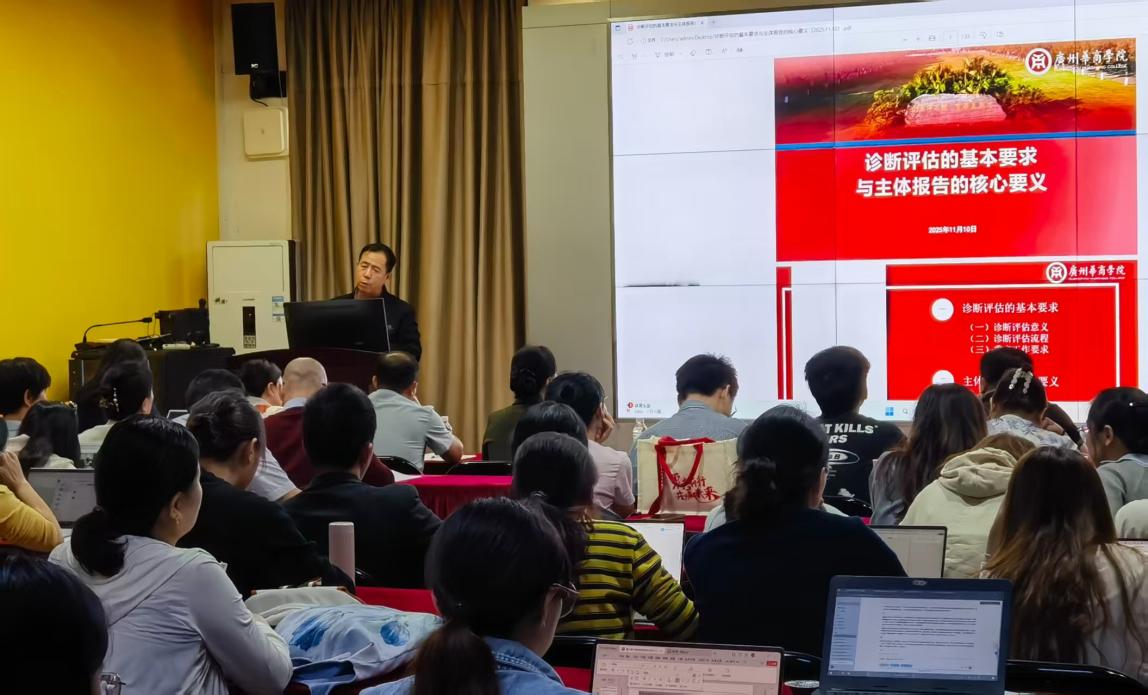 姚凤民院长首先传达了范忠宝副校长在11月10日全校中层干部大会上所作的《诊断评估的基本要求与主体报告的核心要义》报告内容与工作要求。围绕诊断评估意义、诊断评估流程、重点工作要求做出阐述。要求全院教职工深入学习研读,进一步熟悉我校办学定位、发展阶段、办学特色、培养思路等基本方略、质量保障、师徒制等系列做法,对访谈的内容做到心中有数。