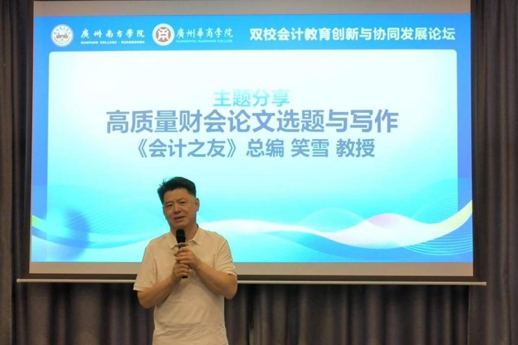 在主题分享环节,《会计之友》总编审笑雪教授以“高质量财会论文选题与写作”为题,系统阐述了学术论文的创新路径与写作规范,并结合多年编辑实践经验,深入剖析了论文选题的策略与方法,为青年教师提升科研能力提供了精准高效、切实可行的指导。
