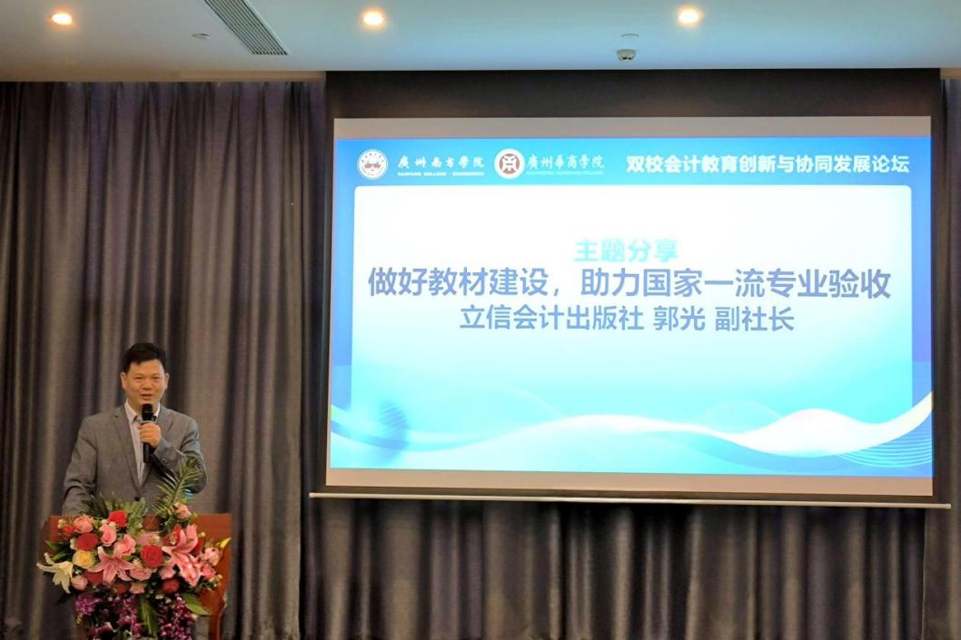 立信会计出版社郭光副社长围绕“做好教材建设,助力国家一流专业验收”的主题展开分享。他强调:教材建设是专业建设的重要支撑,并分享了新时代教材编写的核心理念与实践路径。这为高校教材建设与专业认证工作提供了宝贵参考。
