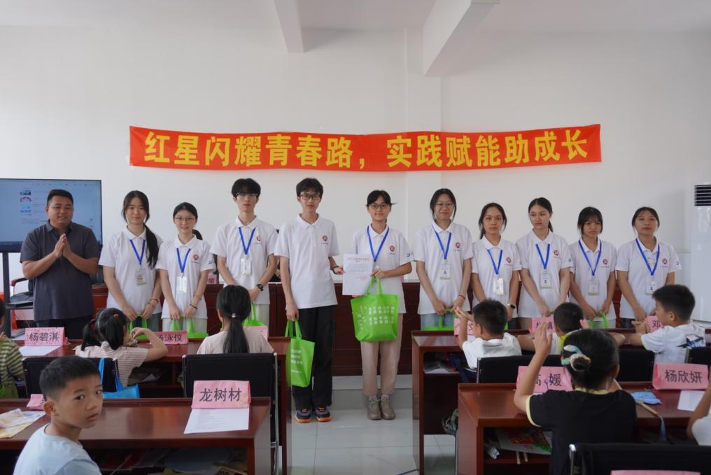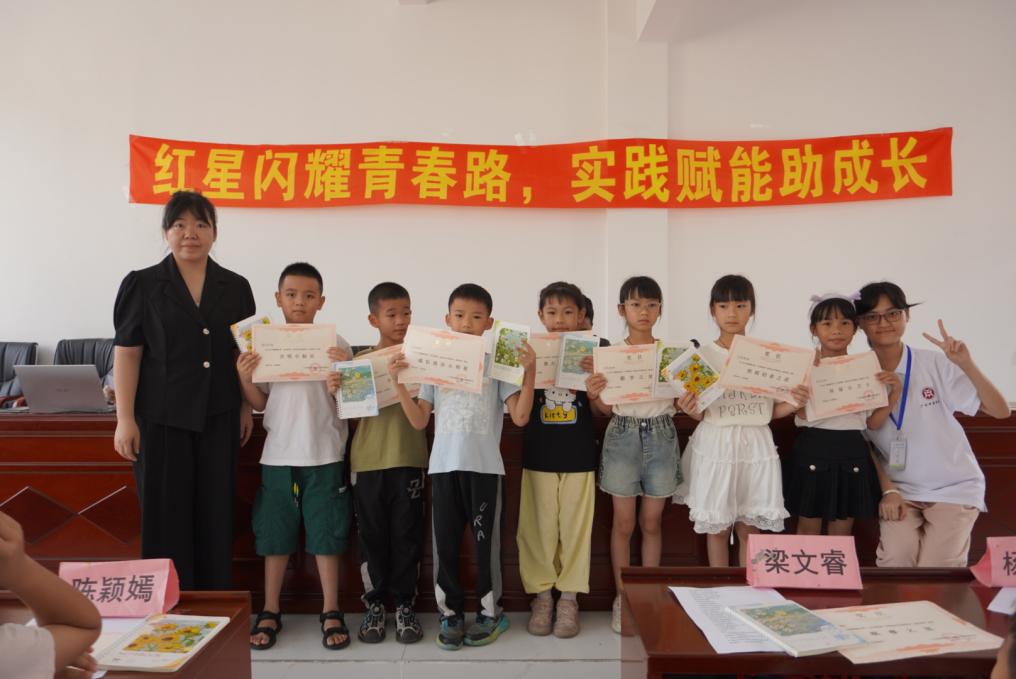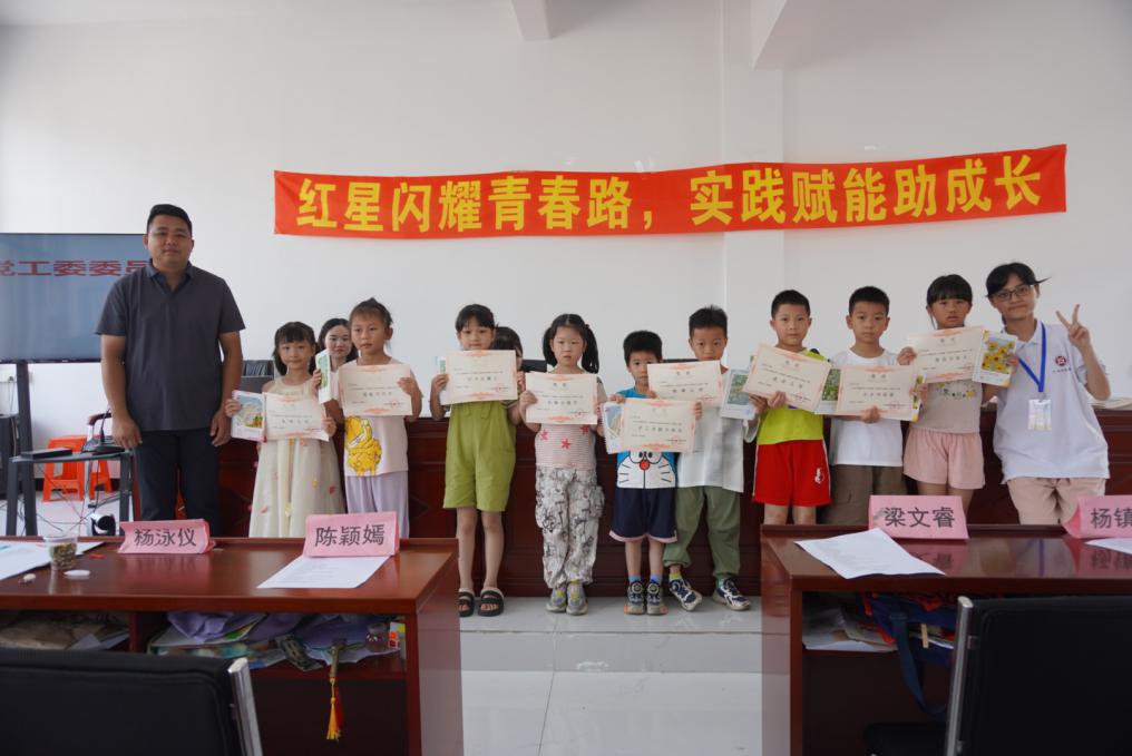 活动的尾声,实践团大学生党员们与孩子们紧紧依偎着,共同在镜头前留下了满载欢声笑语的温馨合影。这一刻的定格,不仅记录了盛夏的温暖邂逅,更凝聚了本次实践活动丰富的内涵——从红色课堂的初心传承到非遗课程的文化浸润,从团队协作的默契培养到创意实践的火花迸发,七天里的每一堂课、每一次互动、每一个笑容,恰似一连串熠熠生辉的珍珠,将实践团的辛勤付出与孩子们的成长收获编织成章,既彰显了教学相长的丰盈成果,也映射了初心在实践中生根发芽的生动景象。