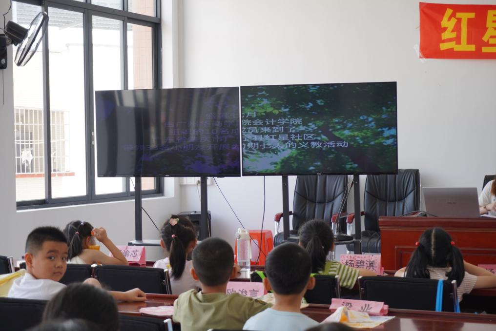 7月16日上午,结营仪式在社区党总支委员梁秋媚的主持下拉开帷幕。参与本次结营仪式的还有广宁县南街街道党工委委员陈学飞、红星社区党总支部委员兼妇女主任邱敏贞、学生家长、实践团全体成员以及参加活动的小朋友们。社区党总支委员梁秋媚首先对本次结营的主题与流程进行了概述,并向到场的所有人表示了热烈的欢迎,至此,正式拉开了这场“成果盛宴”的序幕。